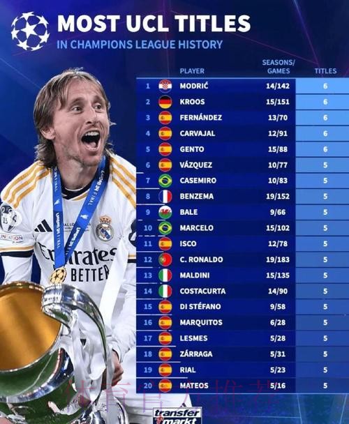 皇马队史欧冠赢球场次榜:莫德里奇追平拉莫斯
